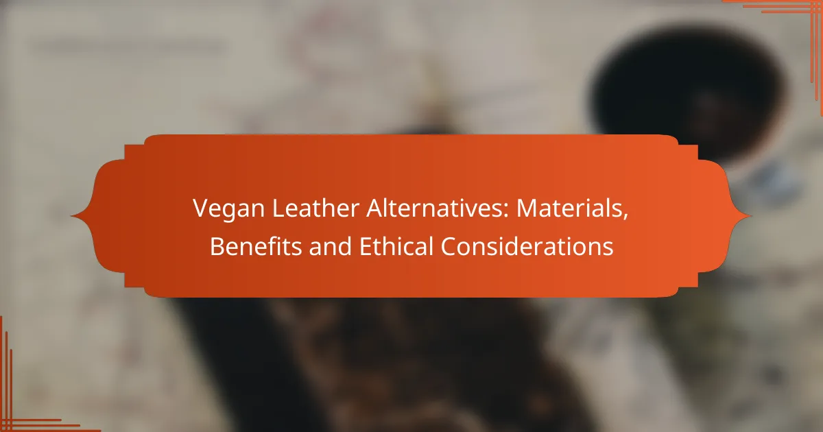 Vegan leather alternatives provide a sustainable and ethical choice for consumers looking to reduce their environmental impact while avoiding animal products. Materials such as pleather, pineapple leather, and mushroom leather each come with unique benefits, making them appealing for various styles and uses. By opting for these alternatives, individuals can support animal welfare and contribute to a more eco-friendly fashion industry.